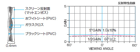 ●膜面は拡散型のホワイトを採用。スクリーンを見る全方向に同質の画像を反射する万能タイプの生地。