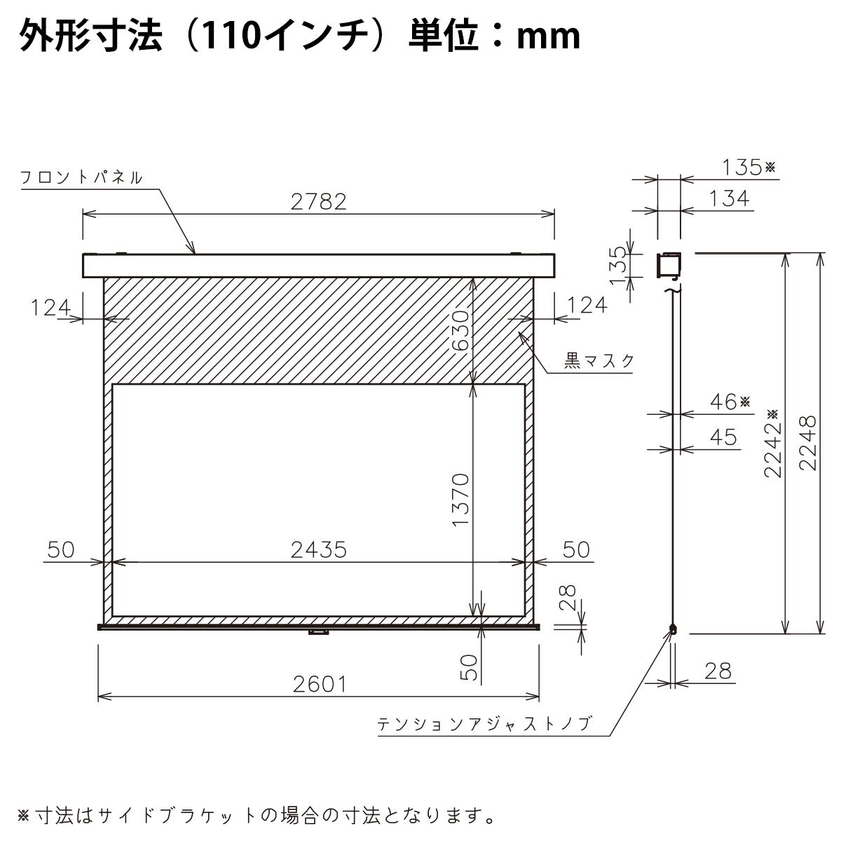 ●スライディングブラケット(白パネル:白色/黒パネル:黒色)と、サイドブラケットの2種類の金具が標準梱包されます。