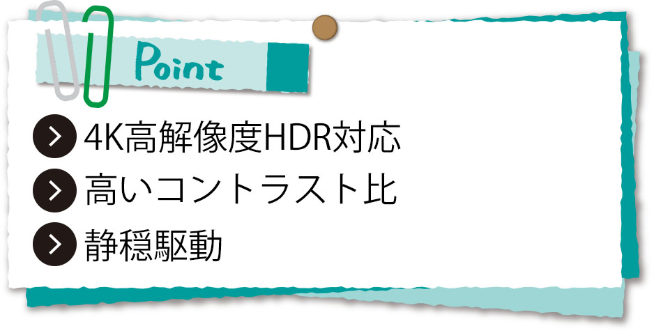 コントラスト比にもこだわり、階調表現が滑らかで高品質な映像を楽しみましょう。